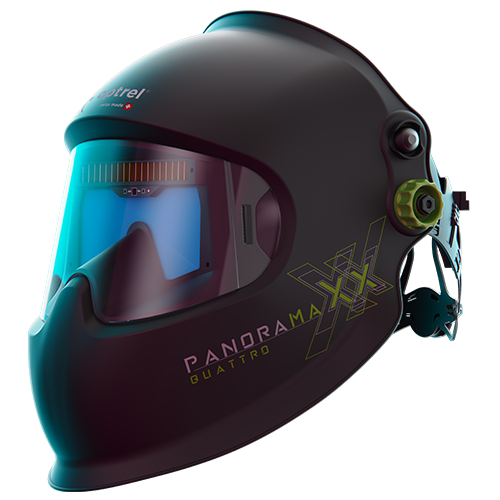 panoramaxx quattro – černá: svářečská kukla s nejlepšími optickými třídami 1/1/1/1 a barevně realistickým panoramatickým výhledem, variabilní úroveň odstínu s ShadeTronic® 3/4-13 (manuál 8-13), zpoždění otevření s FadeTronic, režim broušení, nastavení citlivosti, optrel re-charge, optrel IsoFit® pokrývka hlavy
